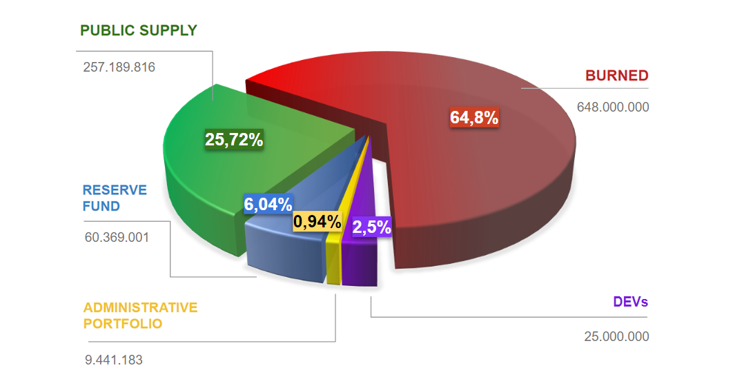 Below you can see the percentage (%) initially distributed of the ECOIN V2 tokens with their respective access links: